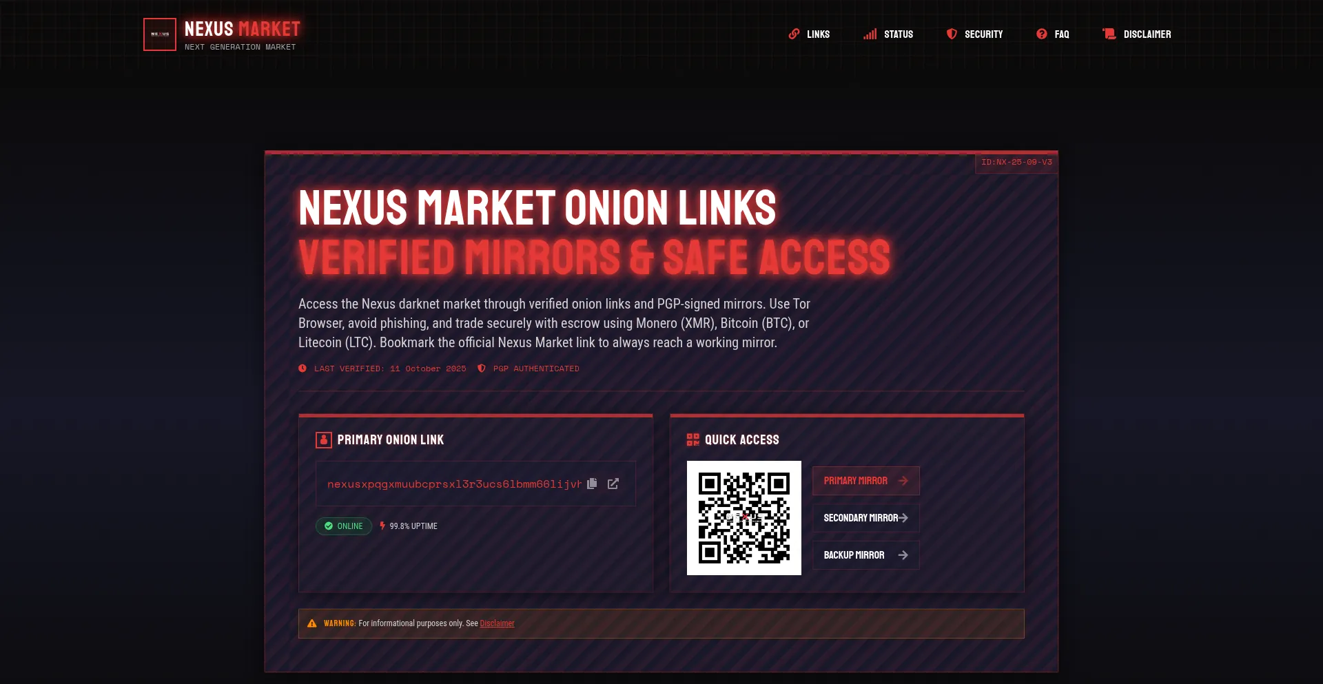 Access Nexus Market safely with verified onion links. Updated mirrors, PGP verification, uptime status, and darknet security tips.