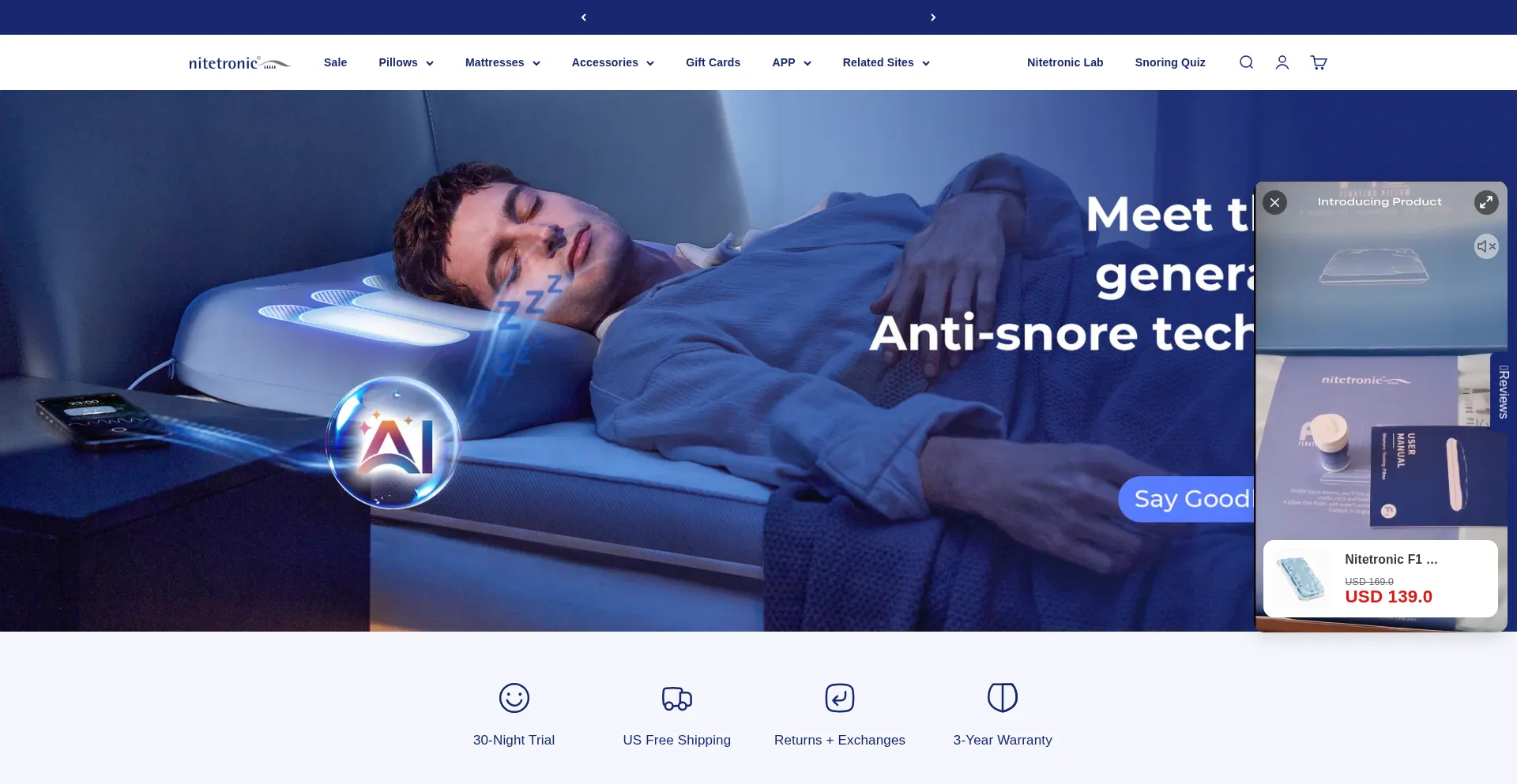Nitetronic - #1 Clinically Proven Anti-Snore Pillow