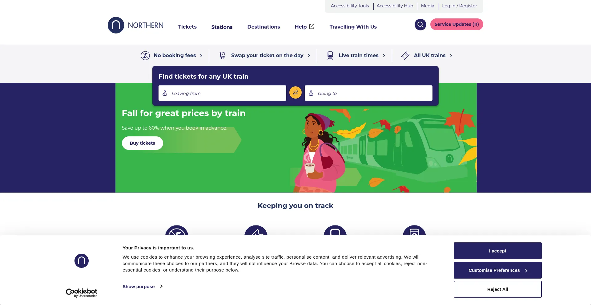 Book cheap train tickets online with no booking fees at Northern, calling at 500+ destinations in the North. Save up to 60% on advance rail fares.