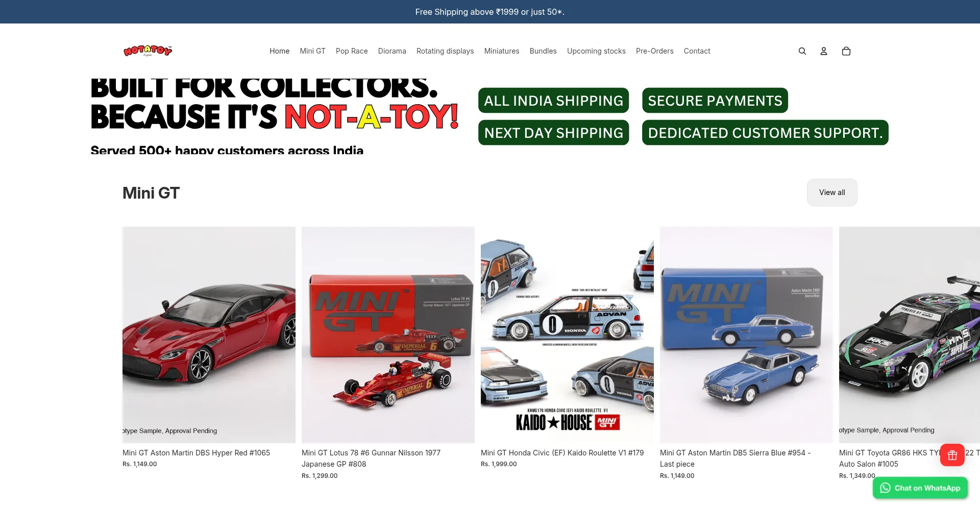 Explore premium 1/64 die-cast cars, Mini GT on MRP, Diorama mats & rotating stands at Notatoy.in