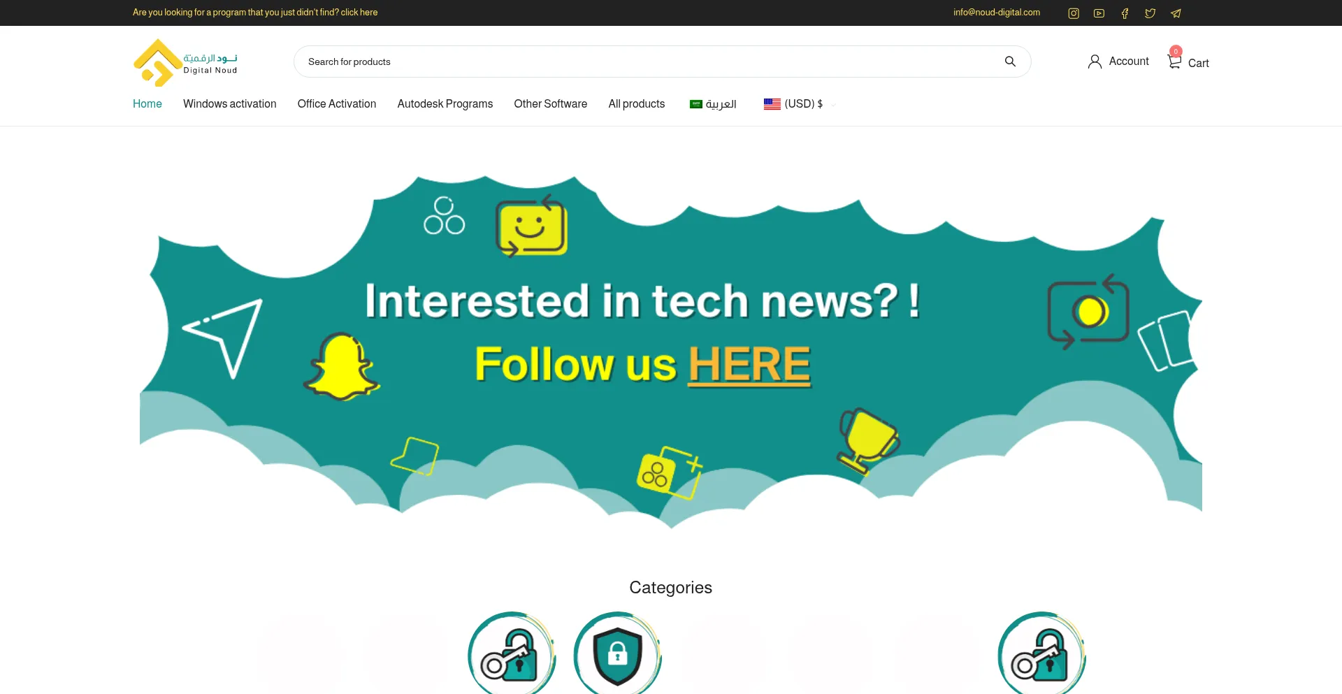 La présence de liens de médias sociaux sur le site web indique que noud-digital.com maintient des comptes officiels sur les médias sociaux, ce qui est un signe positif de crédibilité et d'engagement.