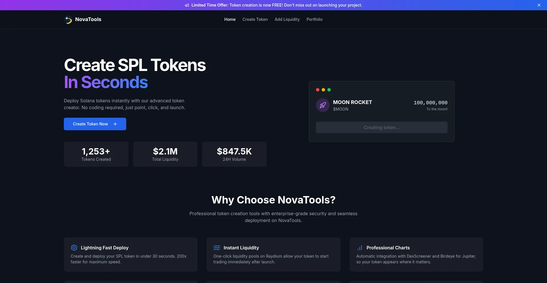 NovaTools - Create SPL Tokens on Solana Instantly