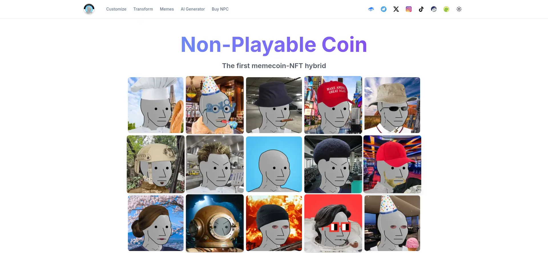 Non-Playable Coin (NPC) is the next evolution of memecoins. Every NPC token is backed by an NFT of the viral NPC meme. Made for all 8+ billion humans on Earth.