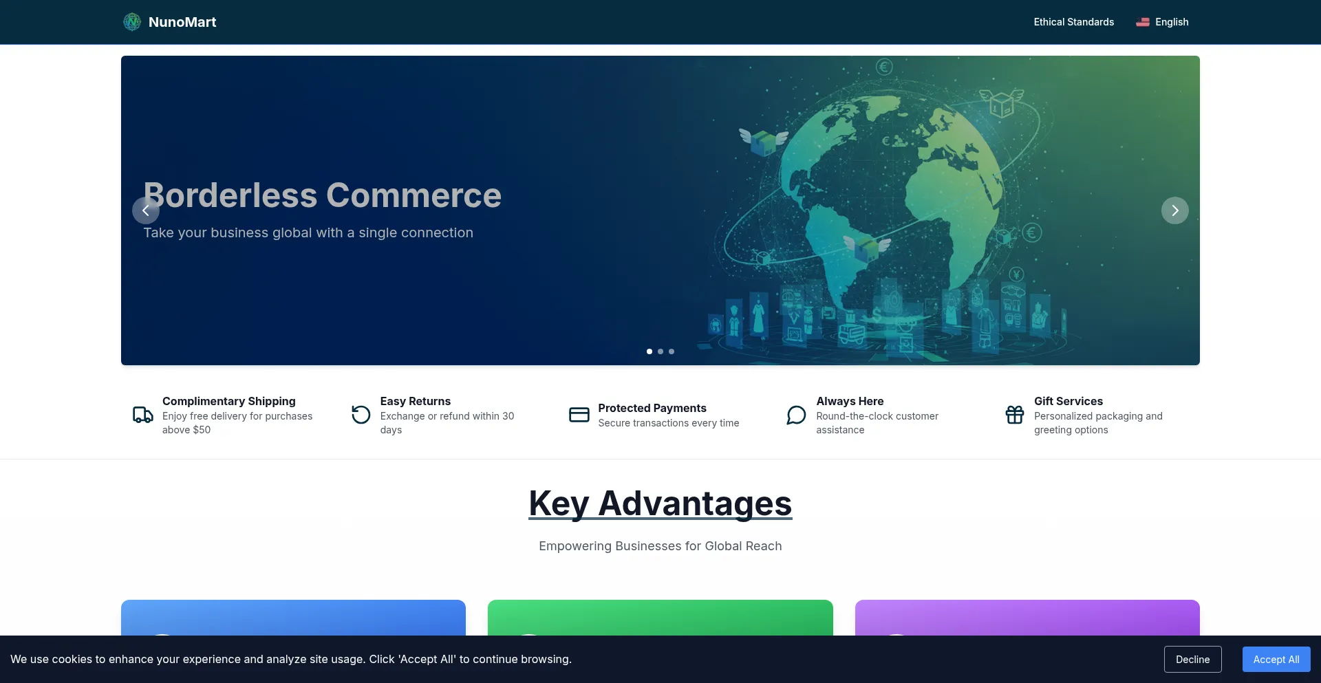 Le site web implémente des mécanismes de consentement aux cookies en conformité avec les réglementations de confidentialité telles que RGPD ou CCPA. Cela démontre que nunomart.shop adhÚre aux standards de protection des données et fournit aux utilisateurs un contrÎle sur les pratiques de collecte de données personnelles.
