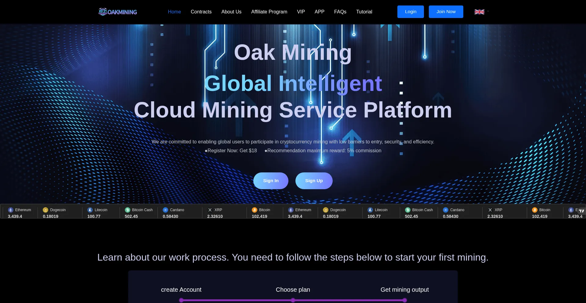 OAKMining is a cloud mining provider with the original mission: the platform provides users with the tools and services they need to succeed in the field of cryptocurrency inves...