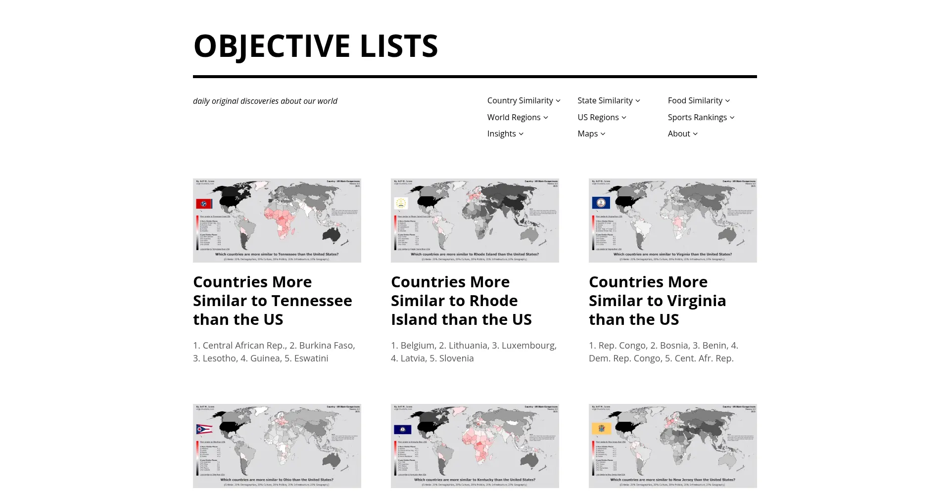 OBJECTIVE LISTS - daily original discoveries about our world