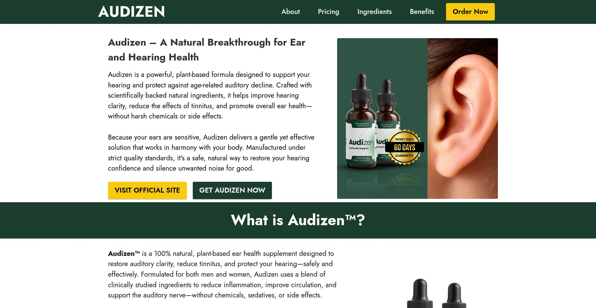 Audizen™ offers natural support for ringing ears and tinnitus relief. Restore calm and clarity to your hearing. Shop now at the Official Site for best results.