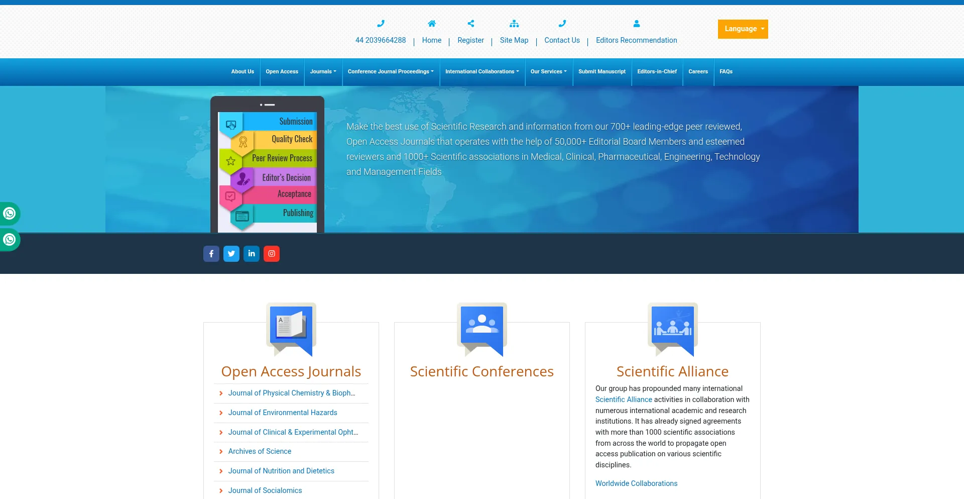 La présence de liens de médias sociaux sur le site web indique que omicsonline.org maintient des comptes officiels sur les médias sociaux, ce qui est un signe positif de crédibilité et d'engagement.