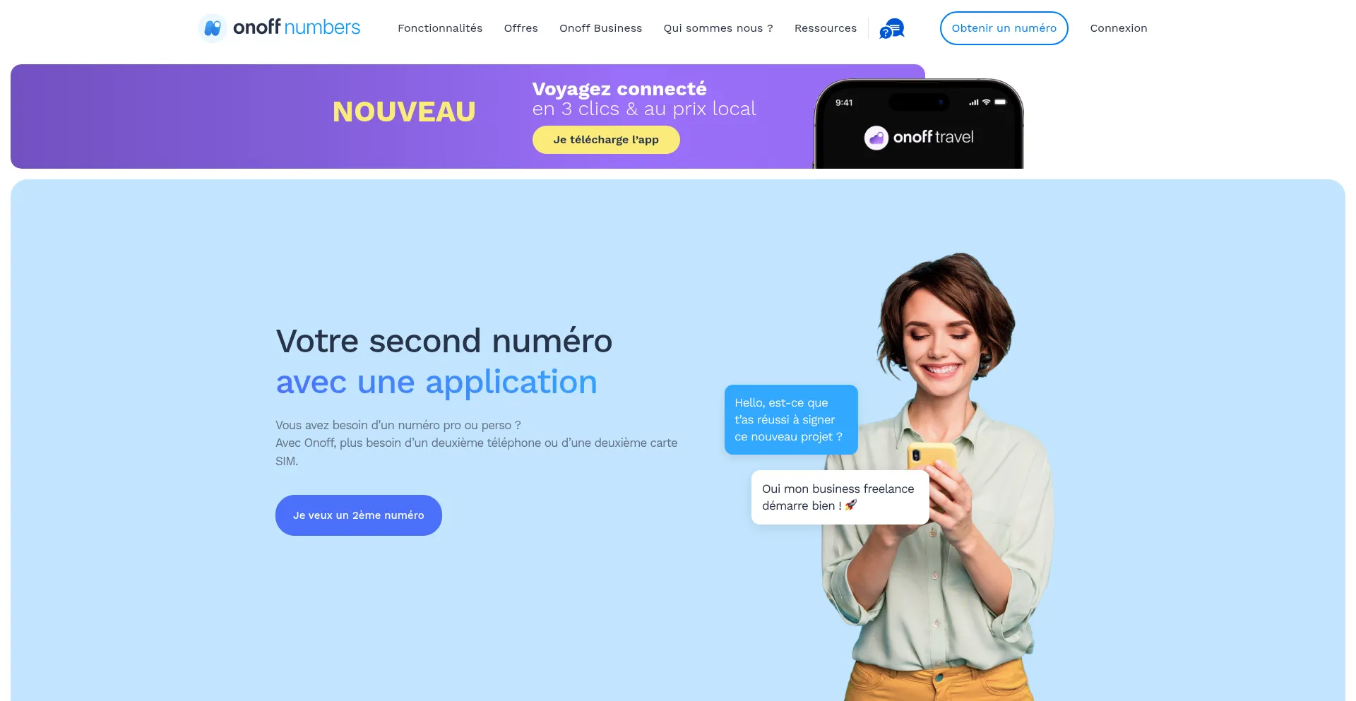 Pour vos besoins pro ou perso, un second numéro sans carte SIM ni téléphone supplémentaire, le tout dans une seule application avec Onoff.