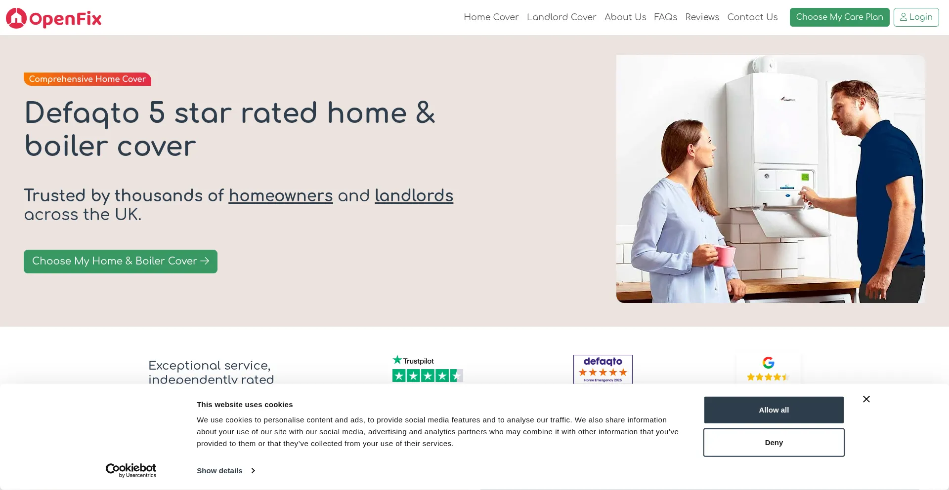 Rated 5 Stars by Defaqto. OpenFix offers comprehensive home and boiler cover with unlimited repairs, fast response, and a price match guarantee