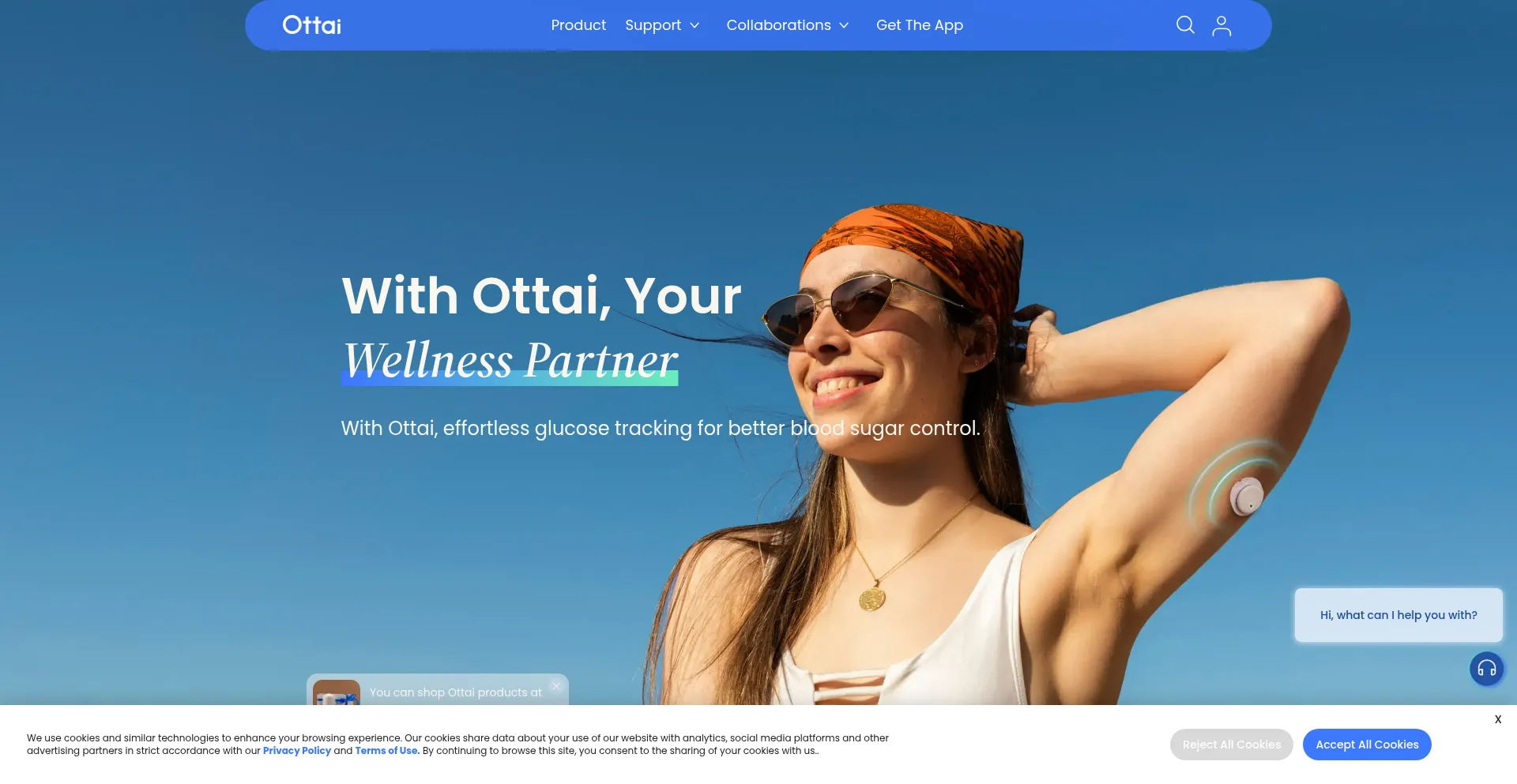 Ottai continuous glucose monitoring track your glucose 24/7, and provide useful AI powered insights to help you better manage your diabetes easily. No calibration, no finger pricks