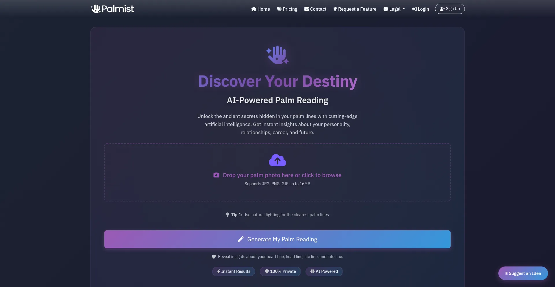 Discover the secrets hidden in your palm with Palmist, an AI-powered palm reading application that reveals insights about your heart, head, life, and fate lines.