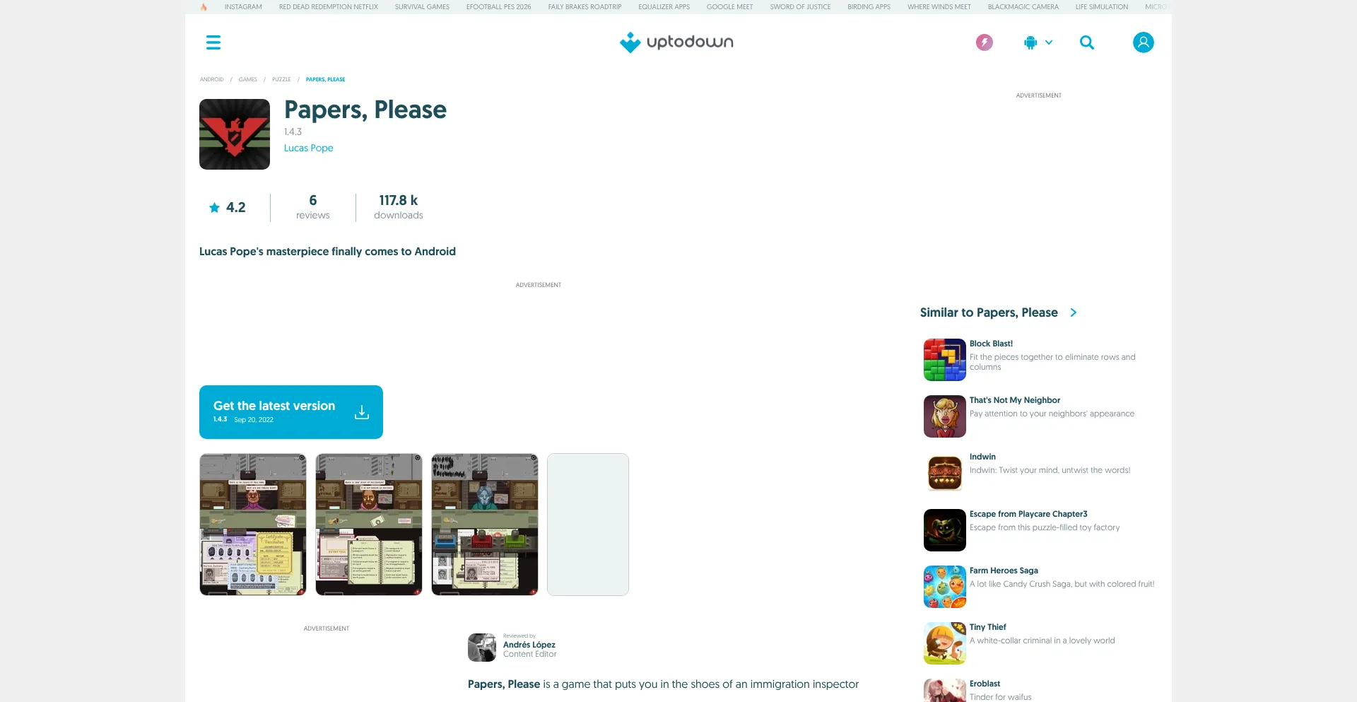 Comment nous avons noté papers-please.en.uptodown.com