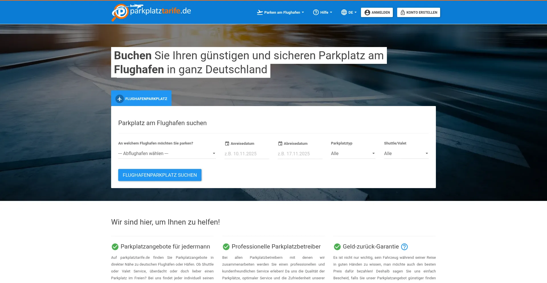 GĂŒnstig und sicher am Flughafen oder Hafen parken - Parkplatztarife.de! Hier finden Sie deutschlandweit ParkplĂ€tze am Flughafen oder Hafen. Direkt online buchen!