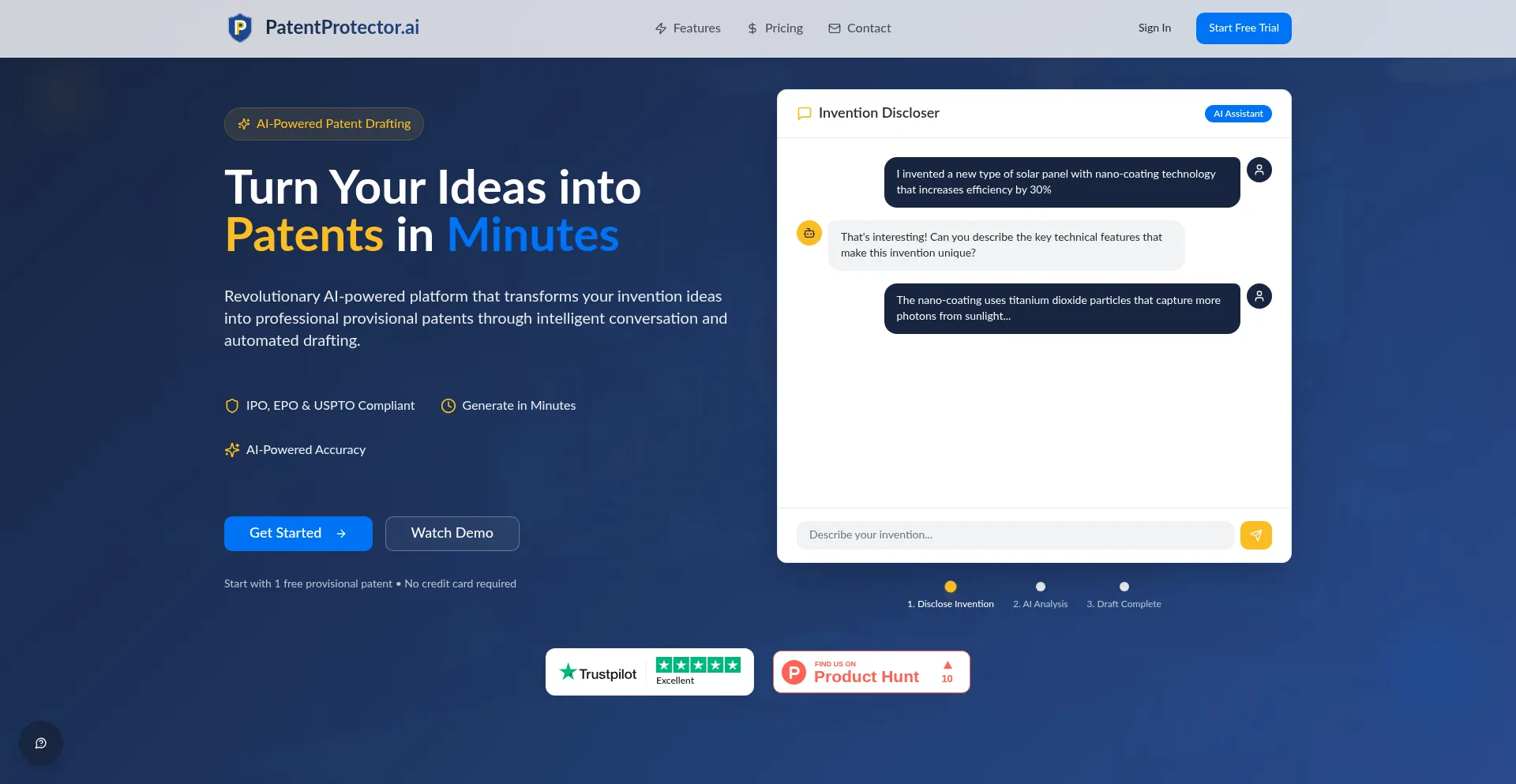 PatentProtector.ai - Turn Your Ideas into Patents in Minutes with AI