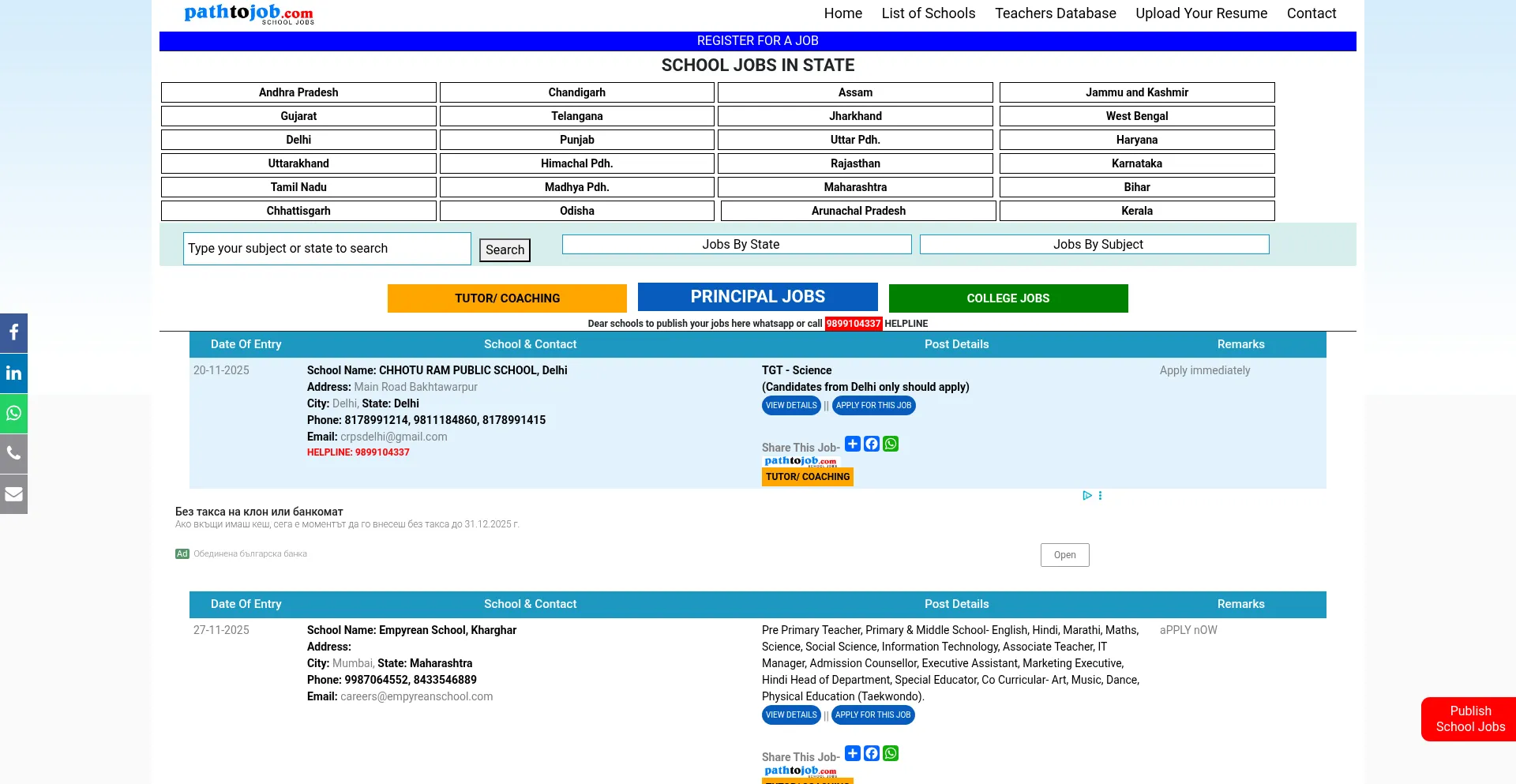 Search for school jobs and vacancies in india for principals, vice principals, head master, coordinator, teachers, sports coach, librarian