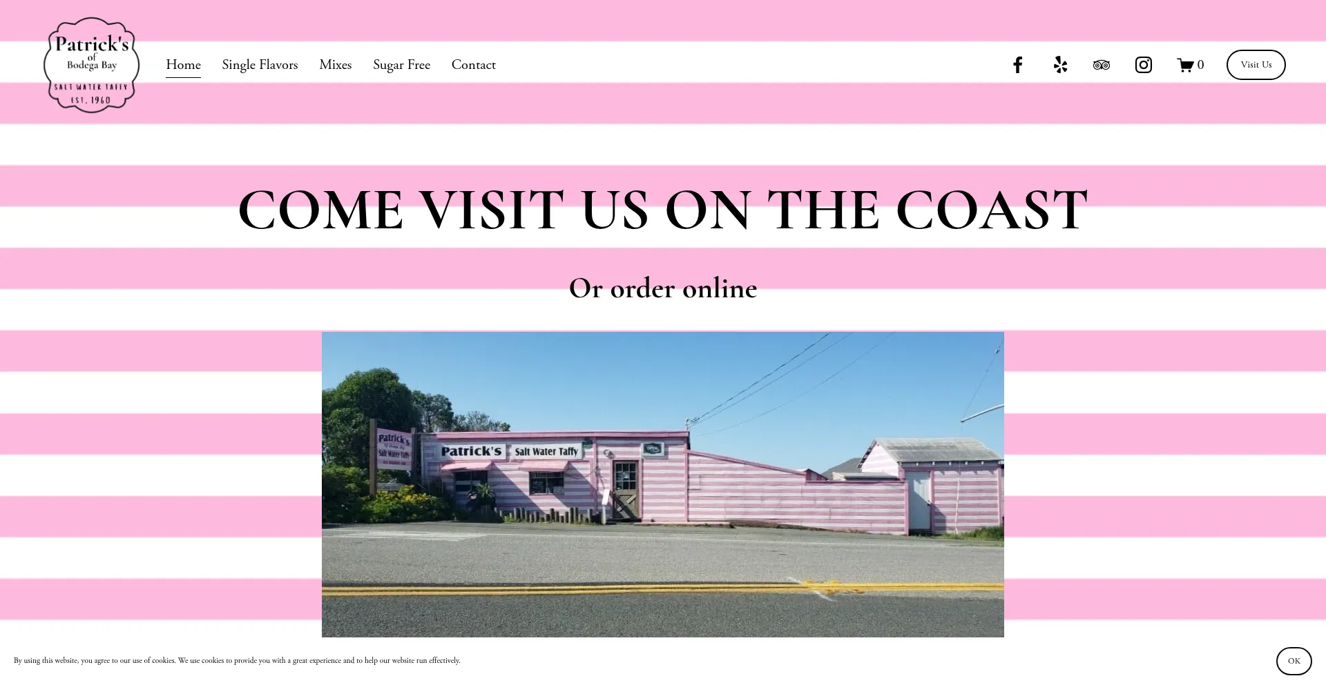 Gourmet salt water taffy for sale from Patrick's of Bodega Bay. Over 80 flavors - gluten-free, and sugar-free options to choose from. Available for store pick up and shipping....