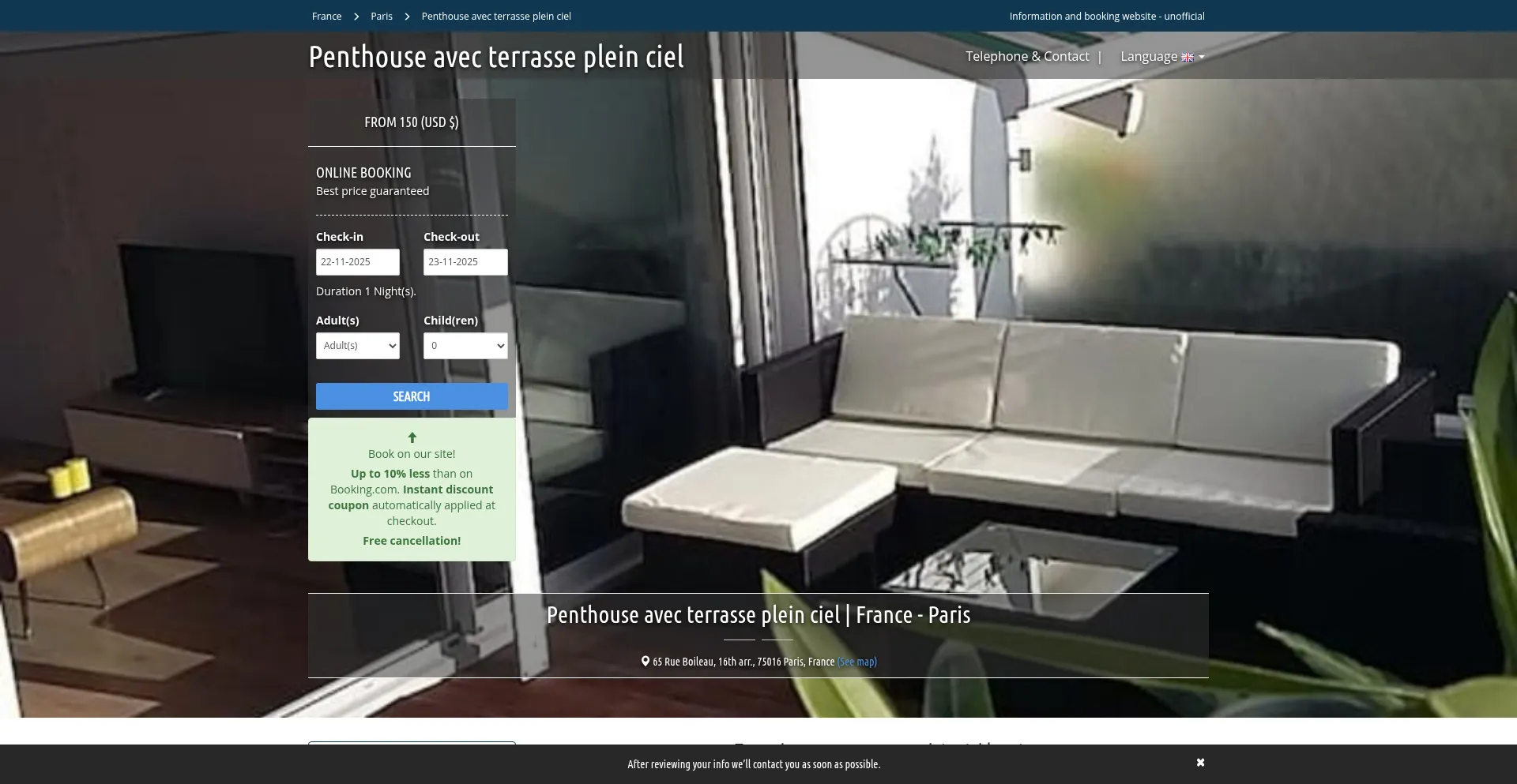 Book Penthouse avec terrasse plein ciel (Paris) From (USD $) 150,00. Discount and coupons available. Limited offer!