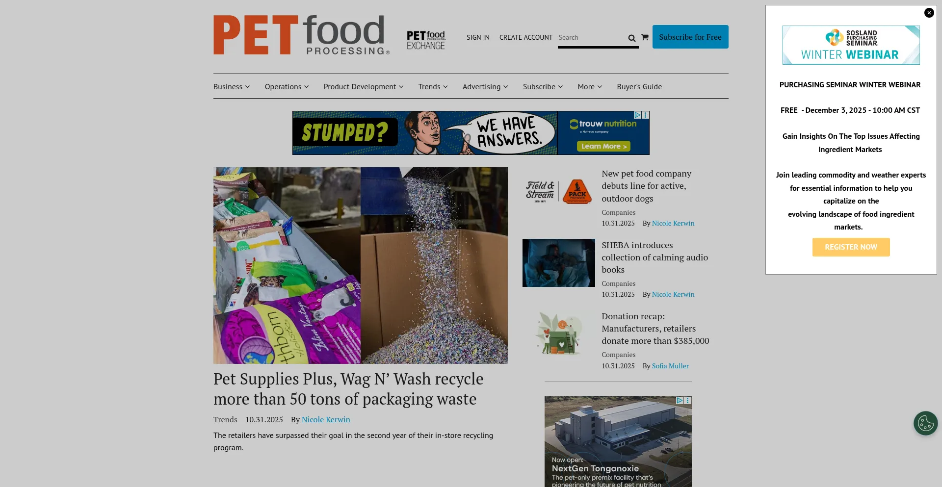 Trusted resource for the news and trends impacting the pet food and pet treat processing industry from ingredients, formulation, operations and food safety.