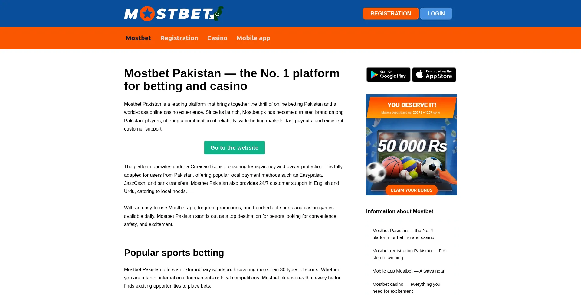 Join Mostbet Pakistan to enjoy sports betting, online casino games, and mobile access. Claim up to 50000 PKR in welcome bonuses!