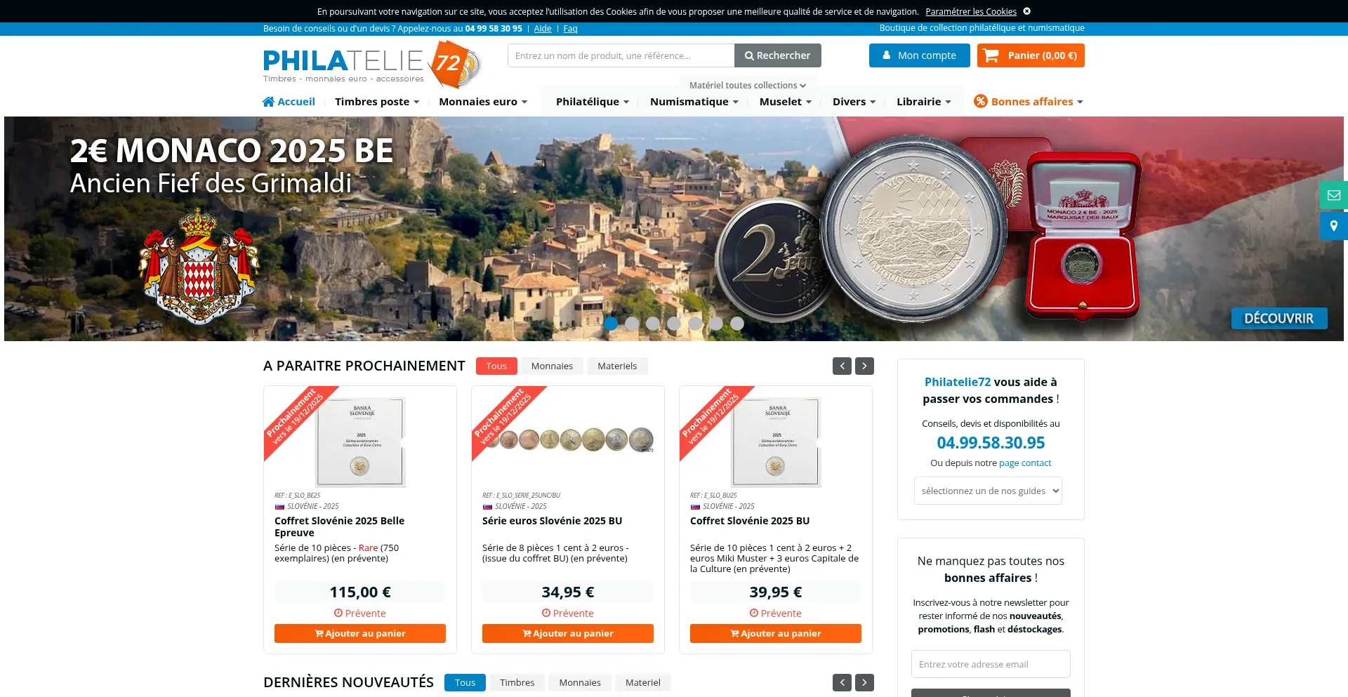 Philatelie72 vente timbres de collection, monnaies euro commémoratives, revendeur Monnaie de Paris, matériel philatélique, numismatique, toutes collections.