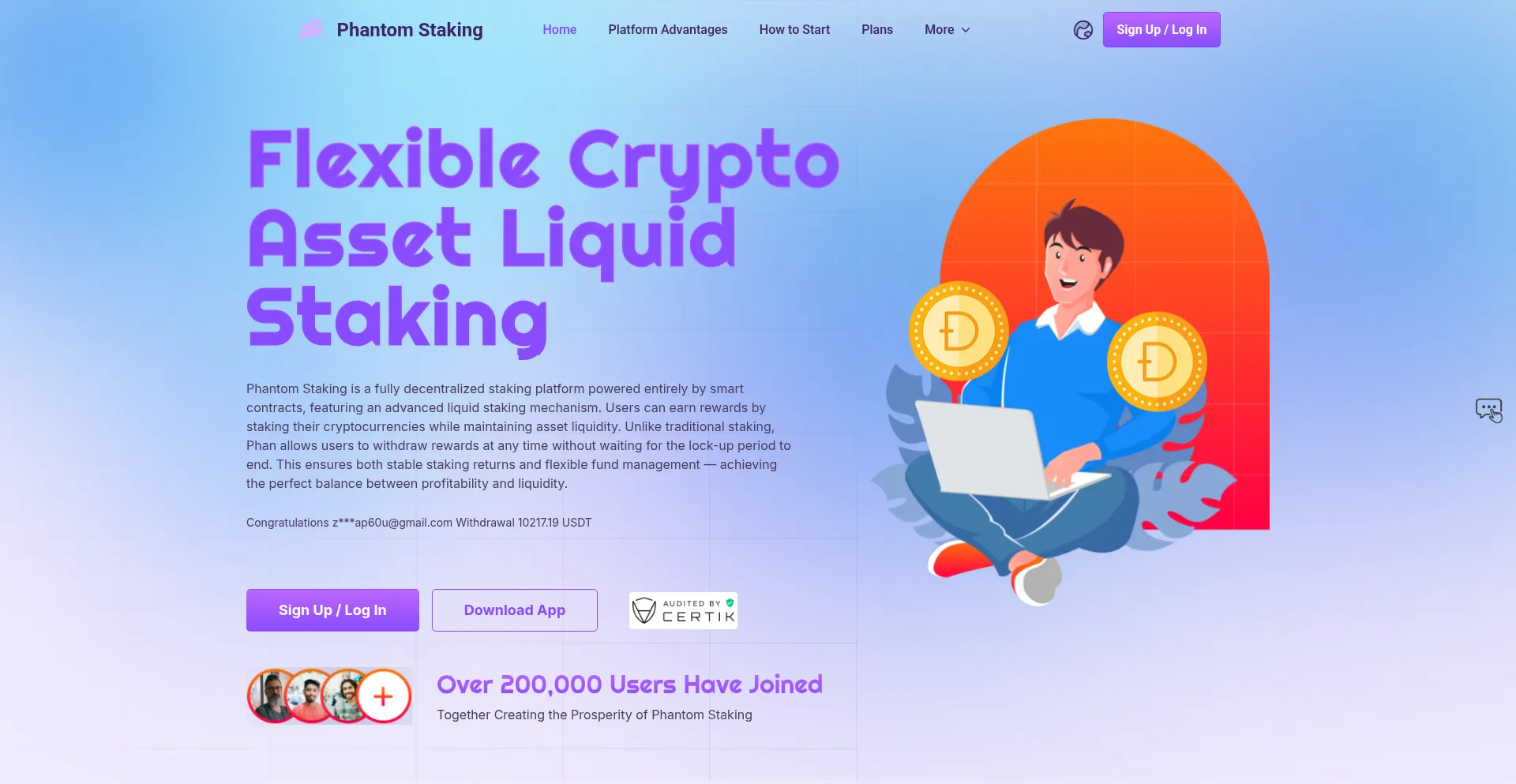 Phantom Staking is a fully decentralized staking platform powered entirely by smart contracts, featuring an advanced liquid staking mechanism.