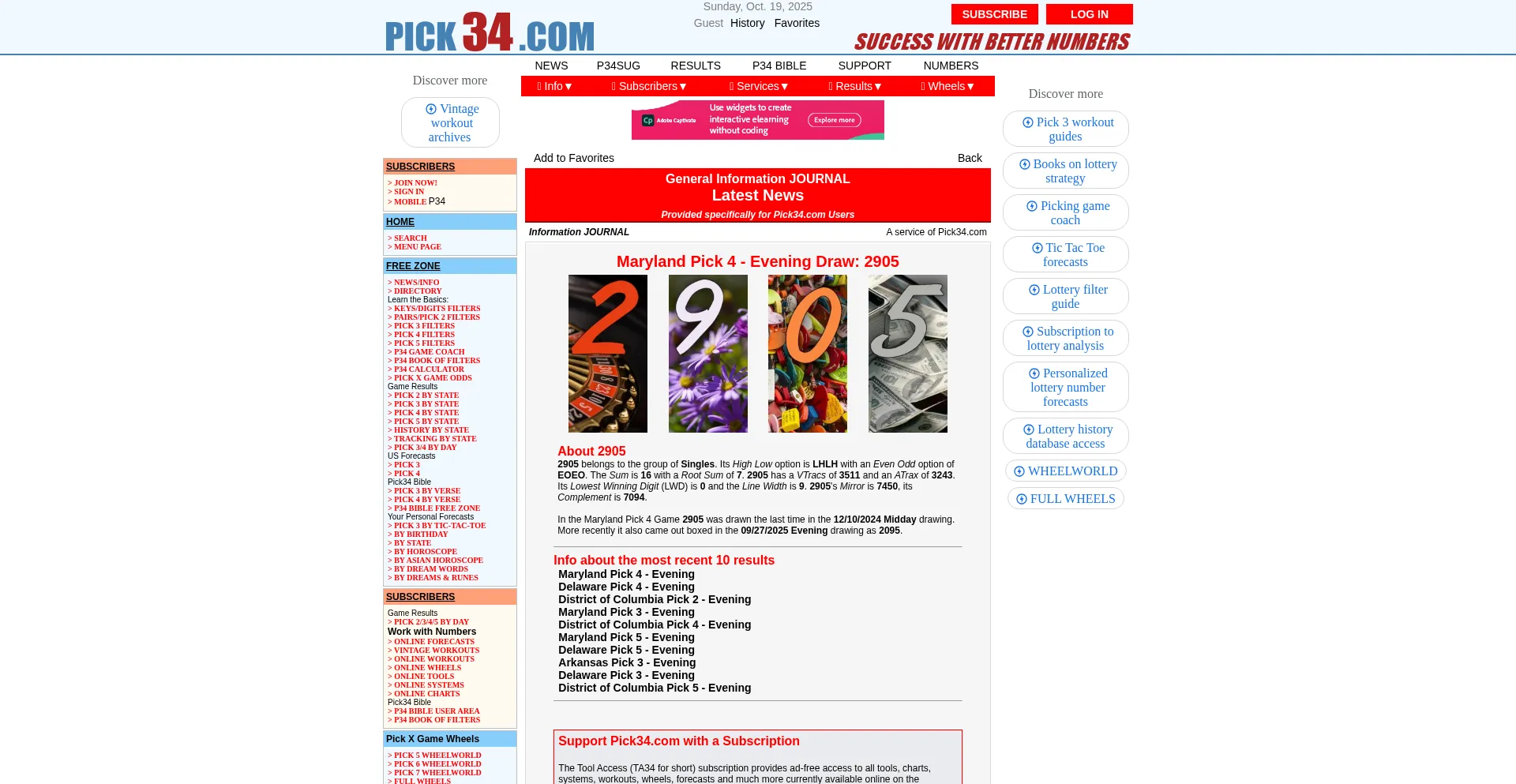 Latest News - General Information JOURNAL - Provided specifically for Pick34.com Users - Pick34.com - Pick34.com - Success with Better Numbers