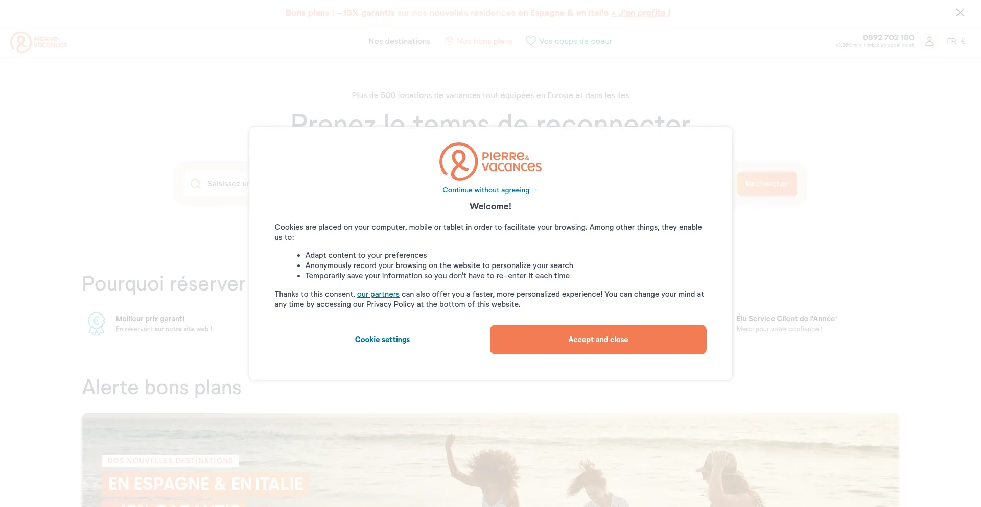 Le site web implémente des mécanismes de consentement aux cookies en conformité avec les réglementations de confidentialité telles que RGPD ou CCPA. Cela démontre que pierreetvacances.com adhÚre aux standards de protection des données et fournit aux utilisateurs un contrÎle sur les pratiques de collecte de données personnelles.