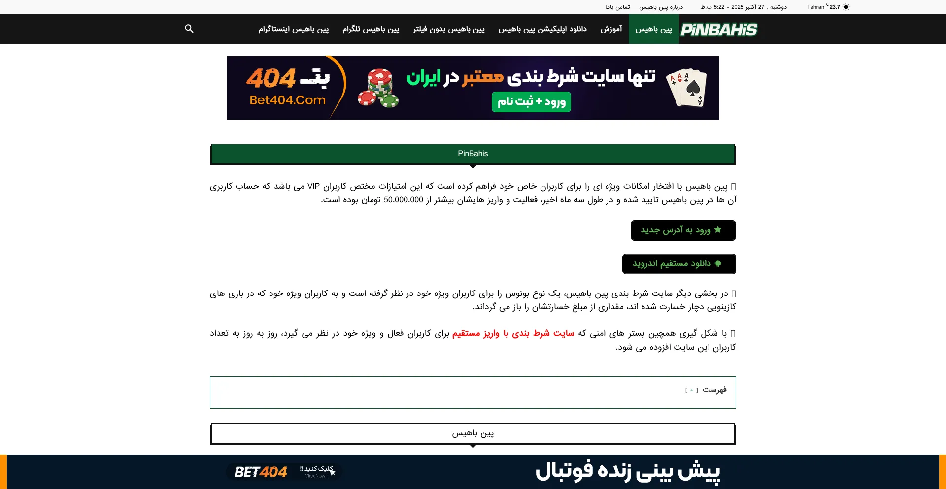 ŰłŰ§ÛŒŰȘ ٟین ŰšŰ§Ù‡ÛŒŰł ŰšŰȘ PinBahis Bet (Ű§ÙŸÙ„ÛŒÚ©ÛŒŰŽÙ† ÙŸÛŒÙ†ŰšŰ§Ù‡ÛŒŰł) ۧŰČ Ù‚ŰŻÛŒÙ…ÛŒ ŰȘŰ±ÛŒÙ† Ù‡Ű§ ۯ۱ ŰčŰ±Ű”Ù‡ ێ۱۷ ŰšÙ†ŰŻÛŒ و ÙŸÛŒŰŽ ŰšÛŒÙ†ÛŒ که ۯ۱ ŰłŰ§Ù„ ...