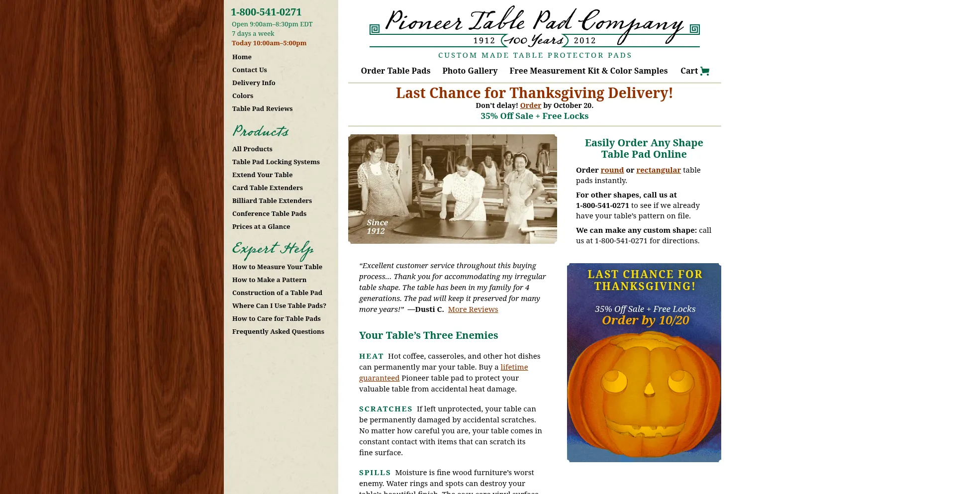 We have been making custom table protector pads for 100 years, with a reputation for unparalleled customer service. 1-800-541-0271.