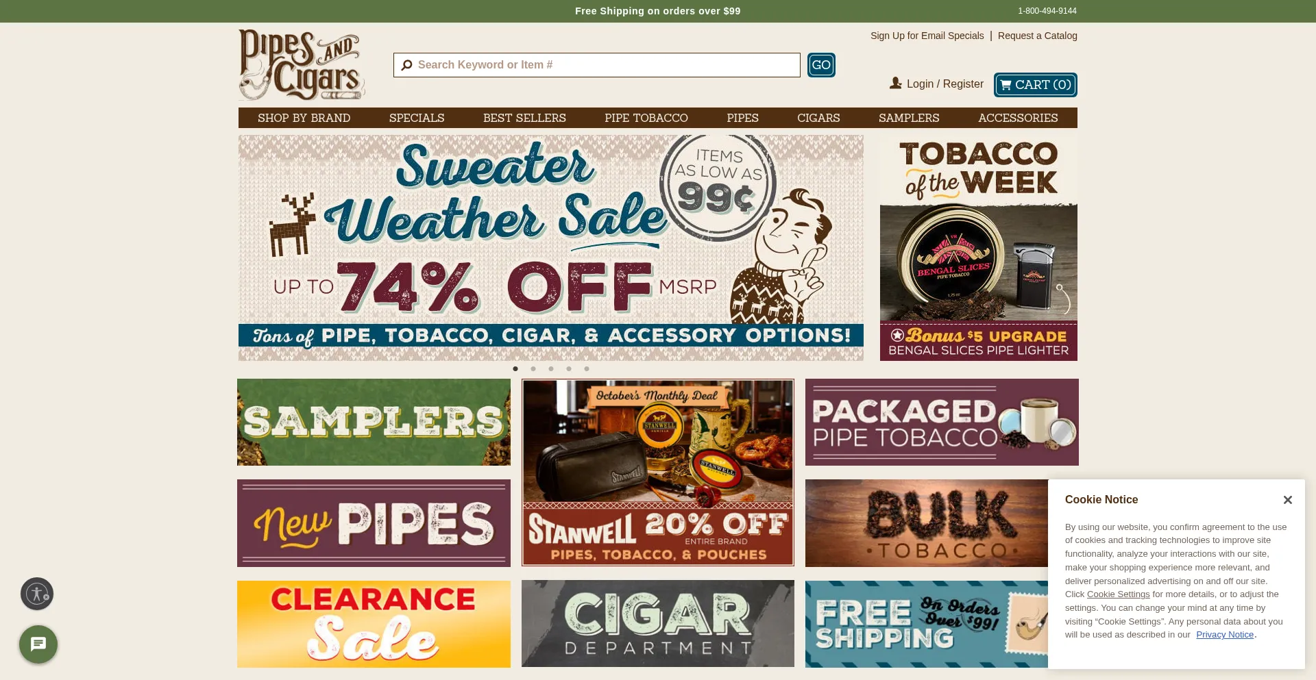 Here at PIPES and CIGARS, we supply the largest selection of pipes, tobacco, cigars, and more. Get FREE shipping on orders over $99 today!