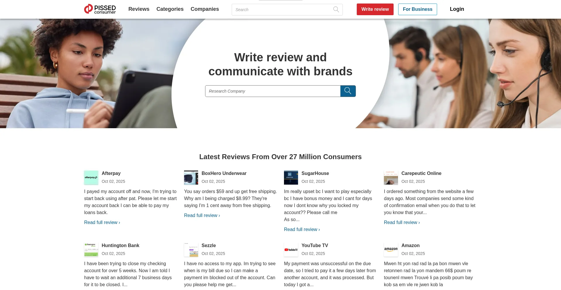 We are a consumer advocacy website. Our review platform gives people a chance to share their stories, experiences, and opinions about companies, products and services. Read, wri...