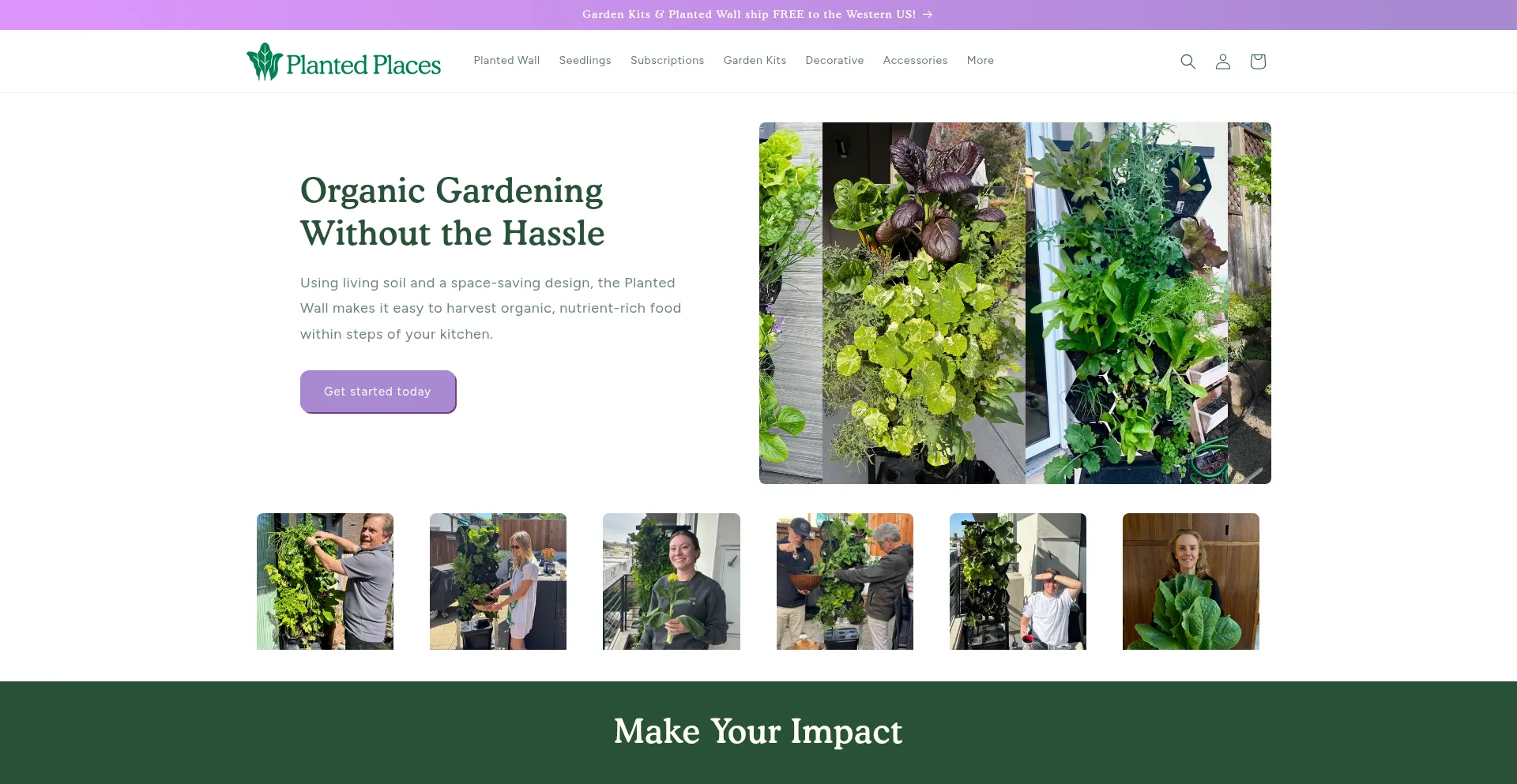 Grow organic produce at home with our vertical gardening systems. Shop Planted Places for wall-growing systems, hydroponic subscription boxes, and planted containers to help you...