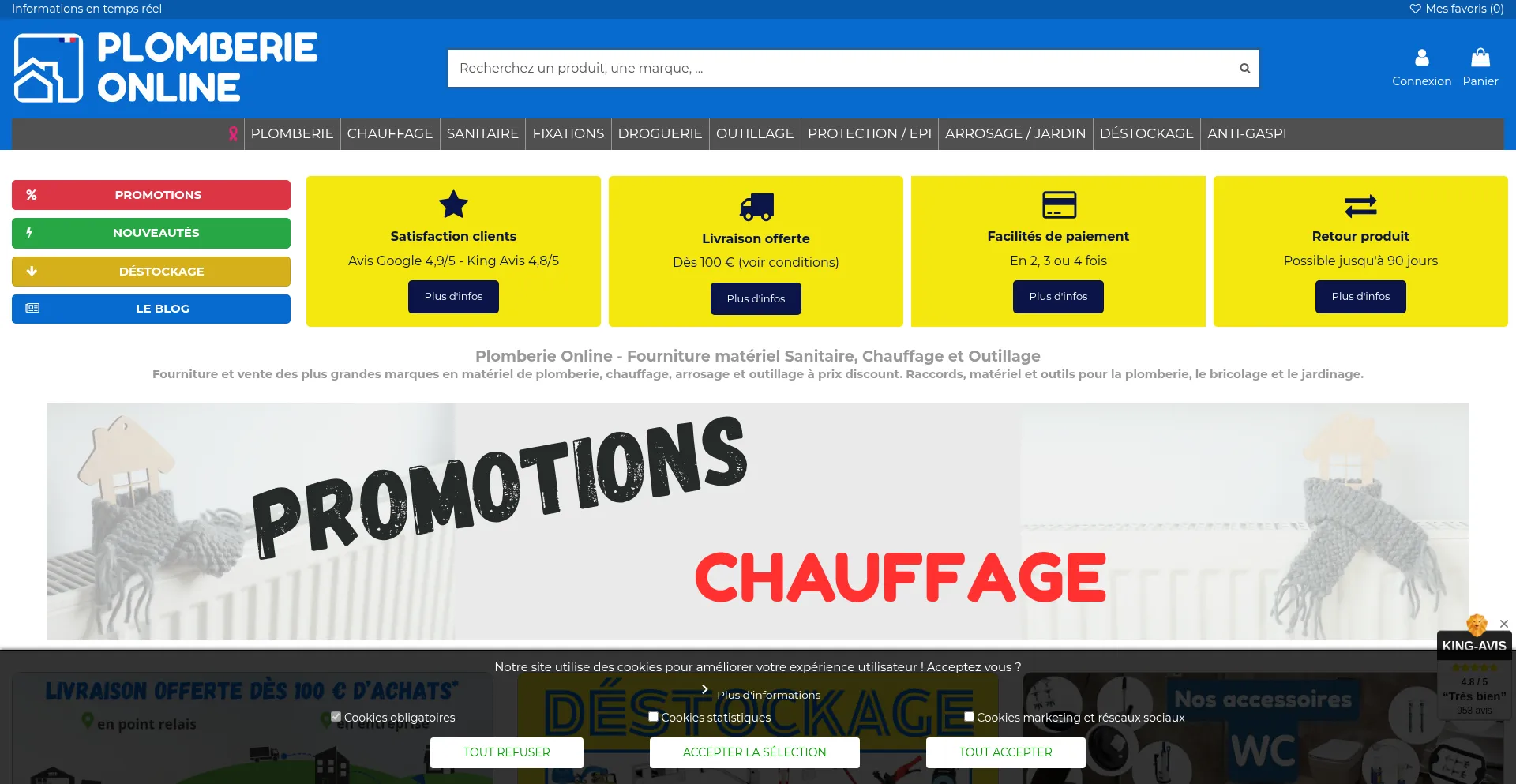 PLOMBERIE ONLINE Fourniture matériel Sanitaire, Chauffage et Outillage