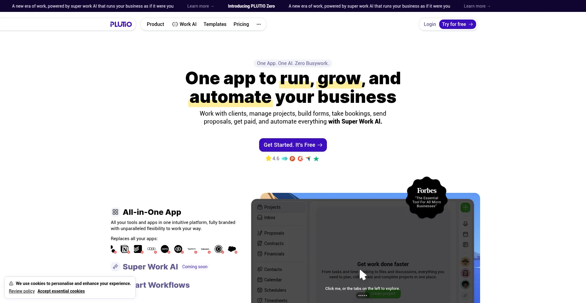 Powered by Super Work AI - work with clients, manage projects, build forms, take bookings, send proposals, get paid, and automate your workflow - all in one app.