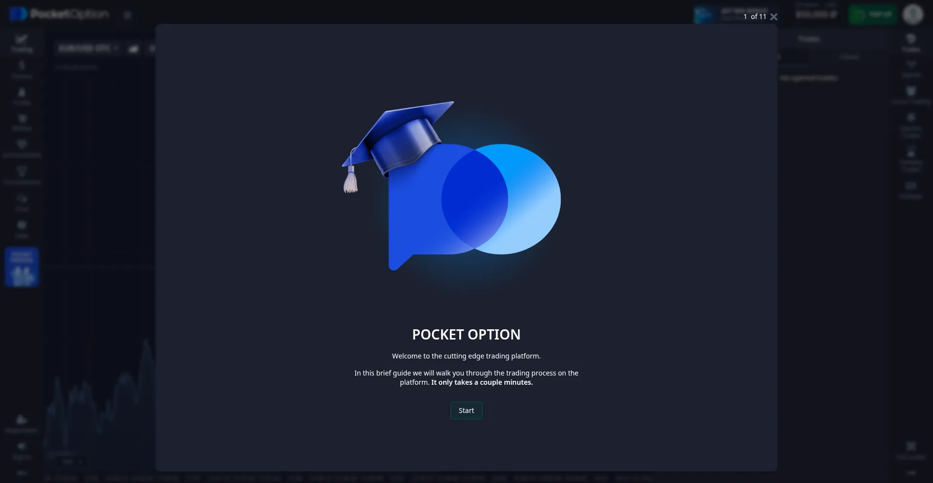 Get a free demo account on Pocket Option and try trading without any risks, having full access to all trading instruments.
