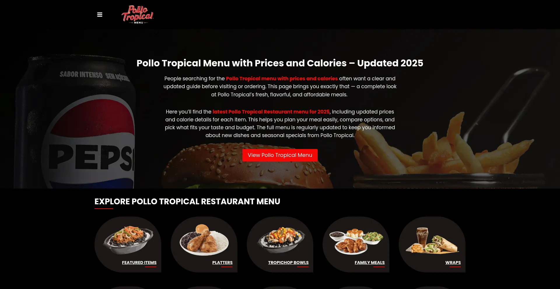 Explore the Pollo Tropical Menu with updated prices, images, and calories — Find your favorite restaurant flavors with prices at single page!