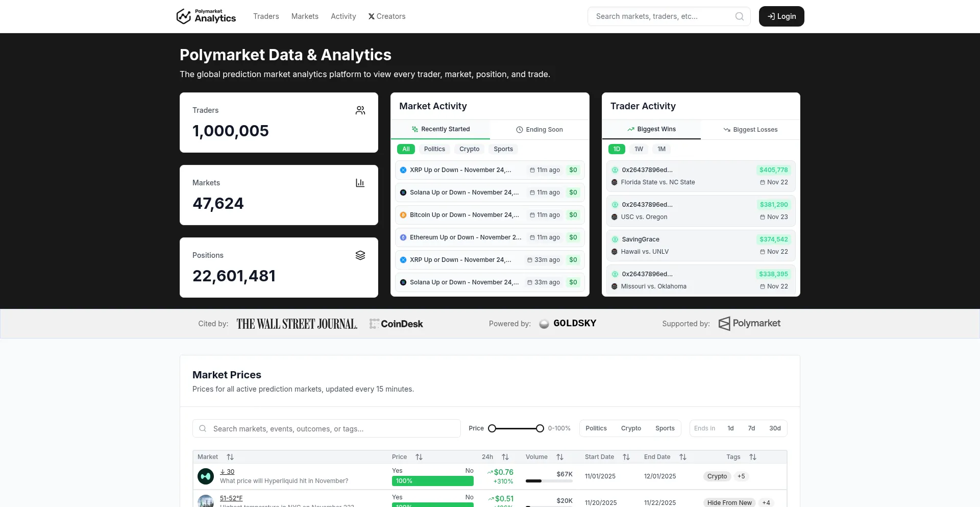 Polymarket Analytics – Prediction Market Data, Analytics, and Dashboards