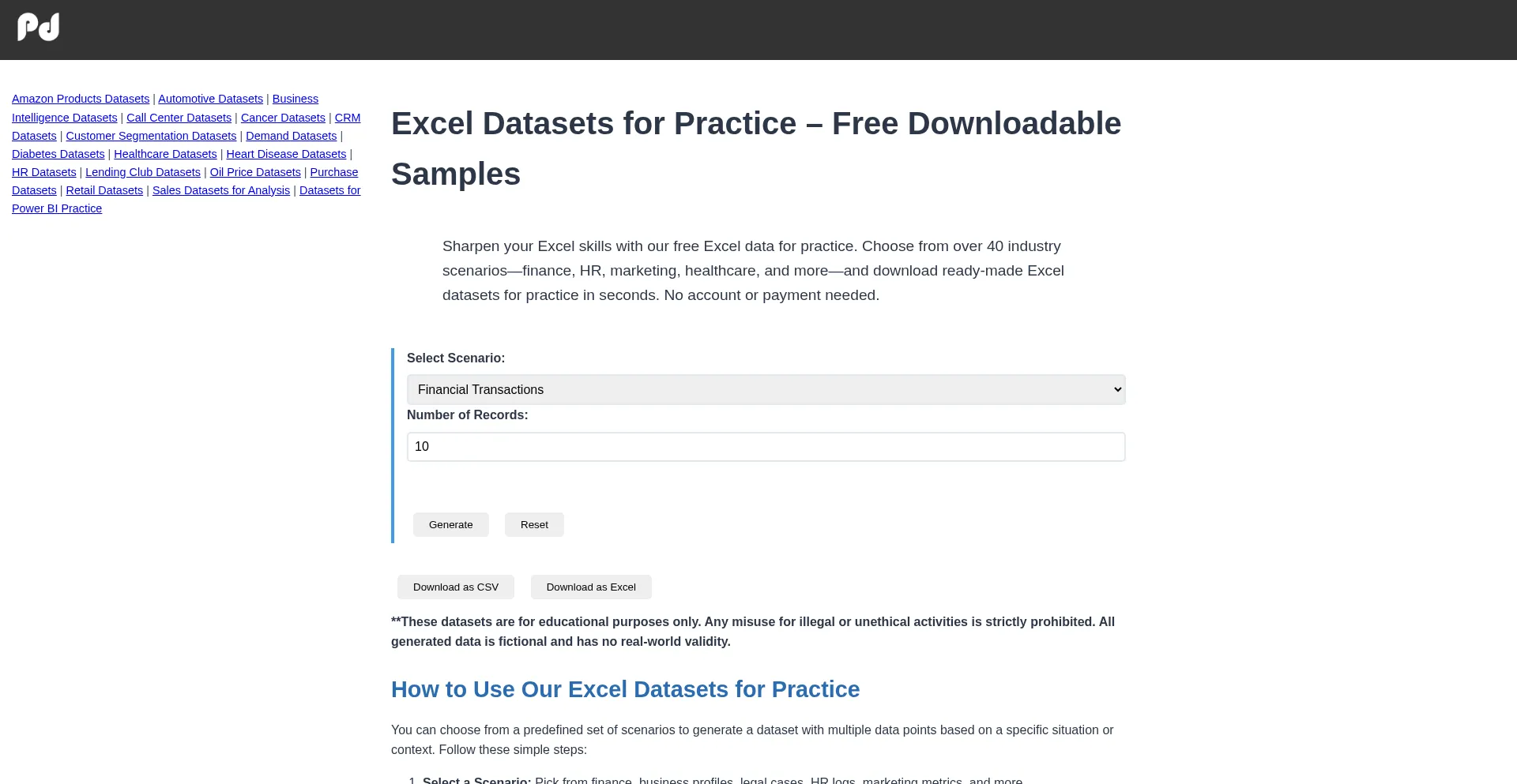 Practicedatasets.online Avis sur le site web