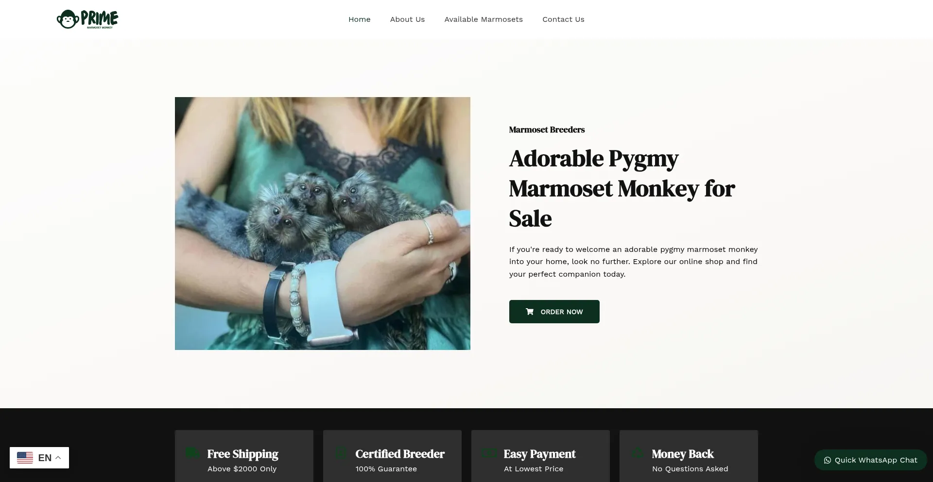 Discover healthy Pygmy Marmosets, Finger Monkeys, and tiny monkeys for sale at Prime Marmoset. We offer ethically-bred primates with secure worldwide shipping to the US, Canada,...