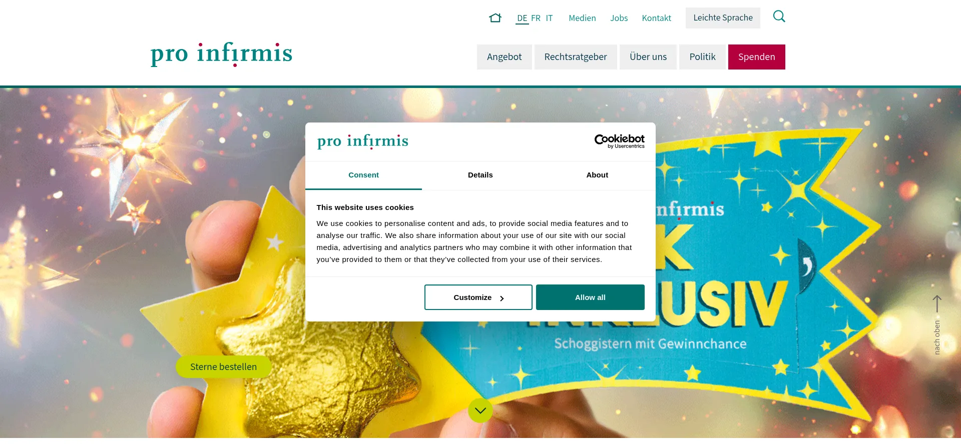 www.proinfirmis.ch www.cookiebot.com ad.doubleclick.net snap.licdn.com consent.cookiebot.com 14934387.fls.doubleclick.net www.instagram.com connect.facebook.net ib.adnxs.com acdn.adnxs.com +27 de plus