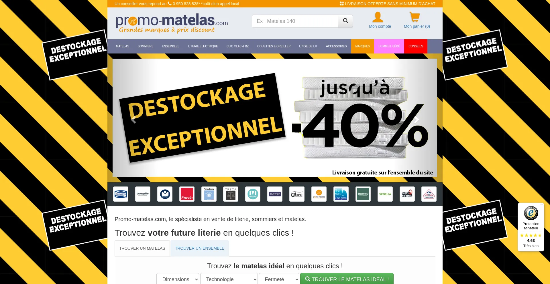 Matelas, sommiers et articles de literie de grande marque Ă  prix discount. Livraison offerte. Paiement CB trois fois sans frais.