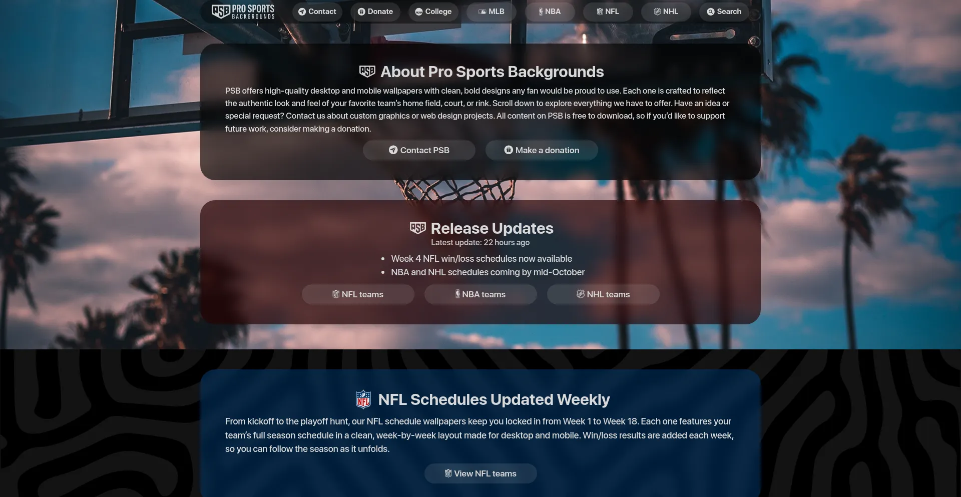 Get schedule wallpapers for MLB, NFL, NBA, NHL, and college football at Pro Sports Backgrounds - made for desktop and mobile, with new designs added regularly.