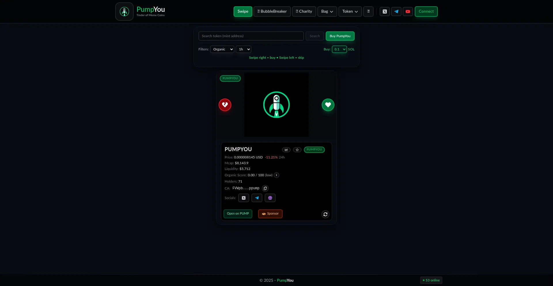 PumpYou - Tinder of Meme Coins