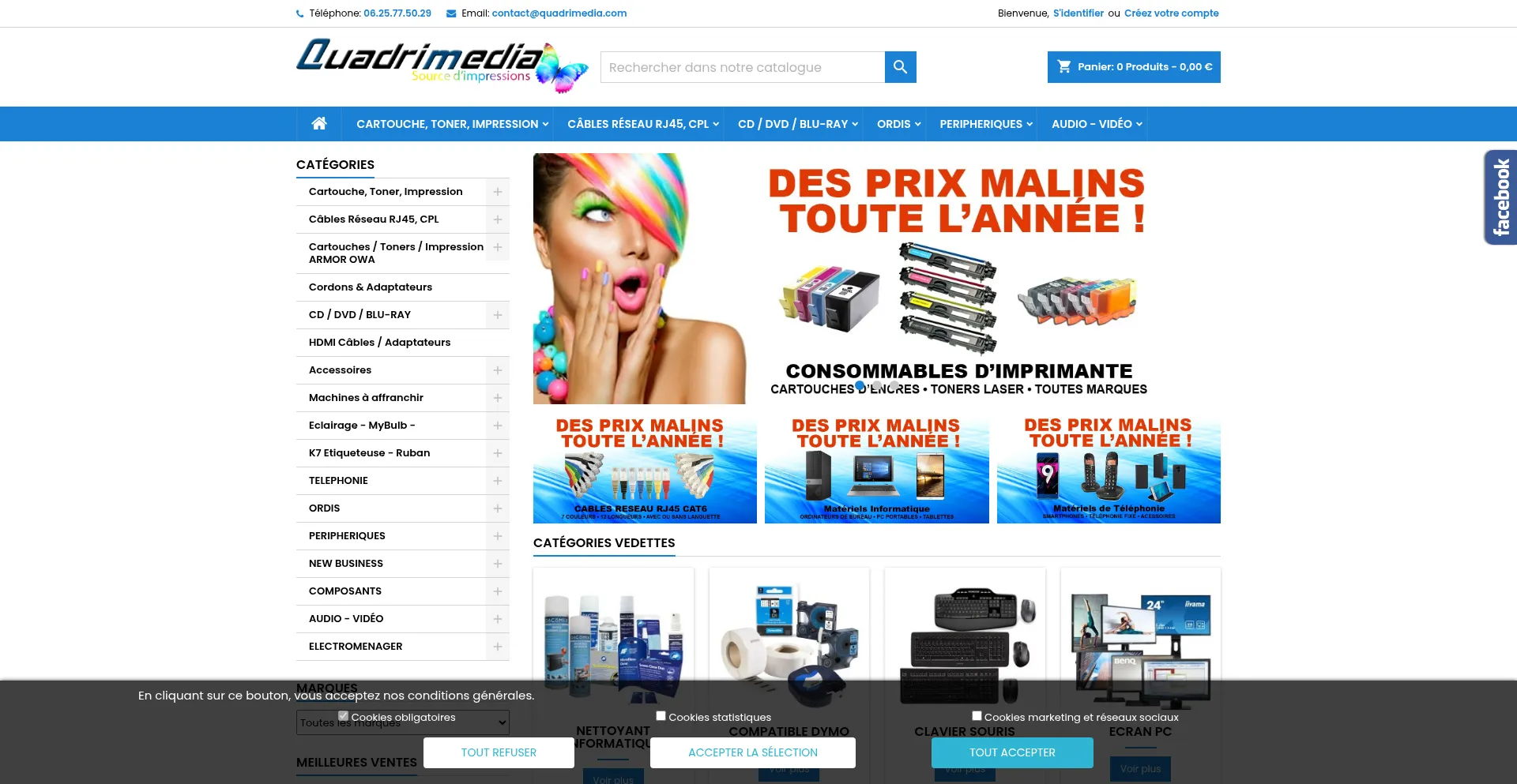 Quadrimedia - Vente de matériel informatique et téléphonie, cùbles réseau, toners laser et cartouches d'encre compatibles