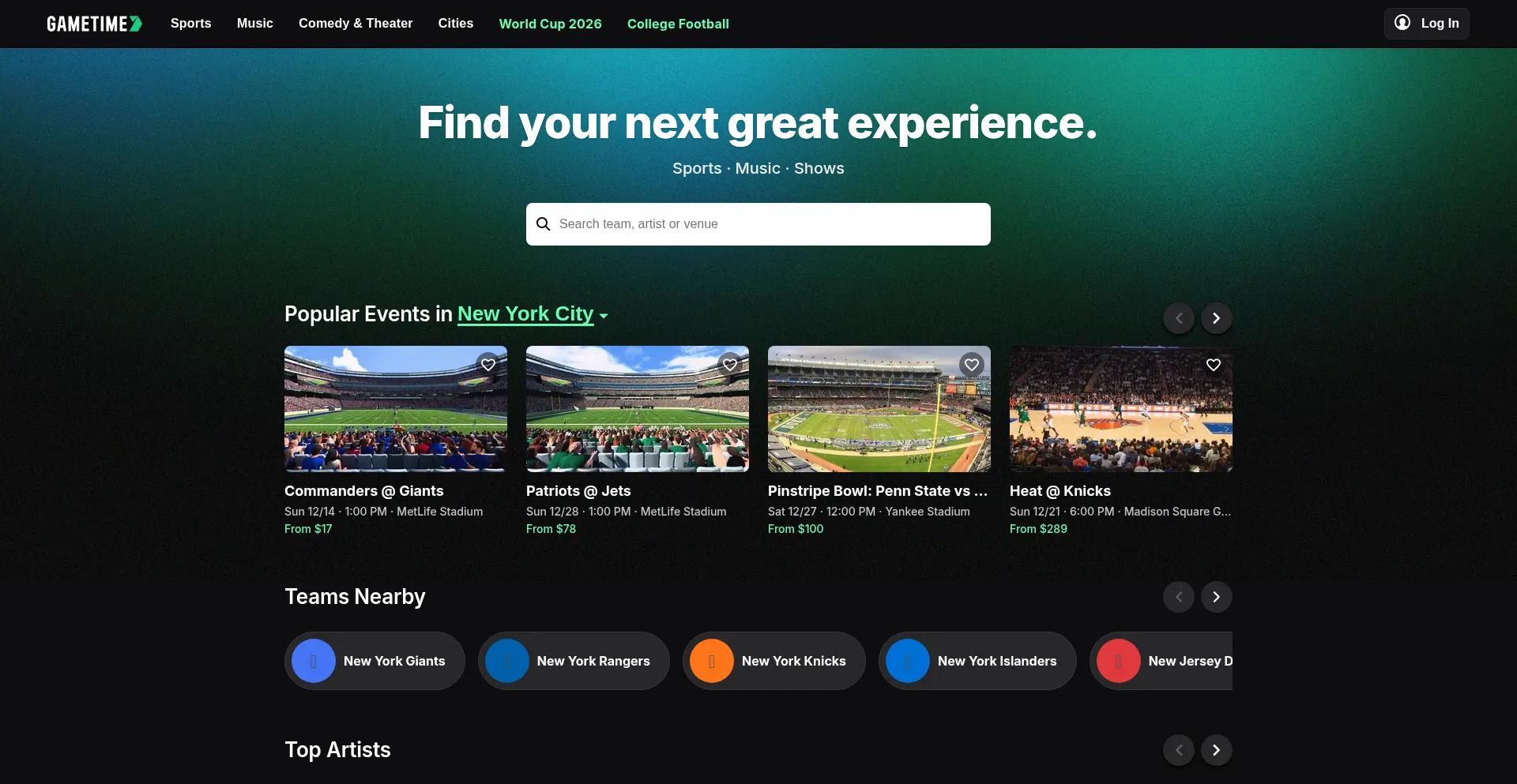 Last-Minute Sports, Music & Shows Tickets | Gametime