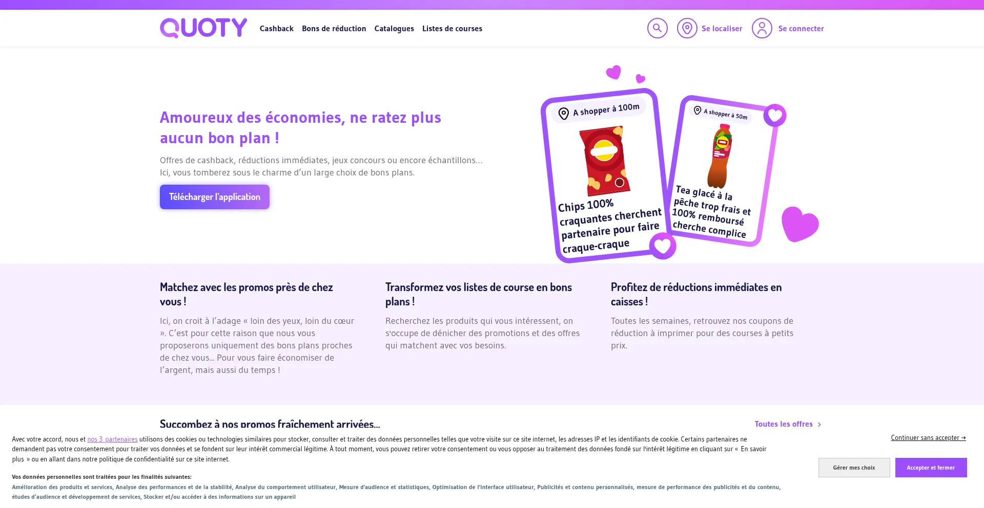 Catalogues, Promos et offres Cashback pour créer votre liste de course sur Quoty.app
