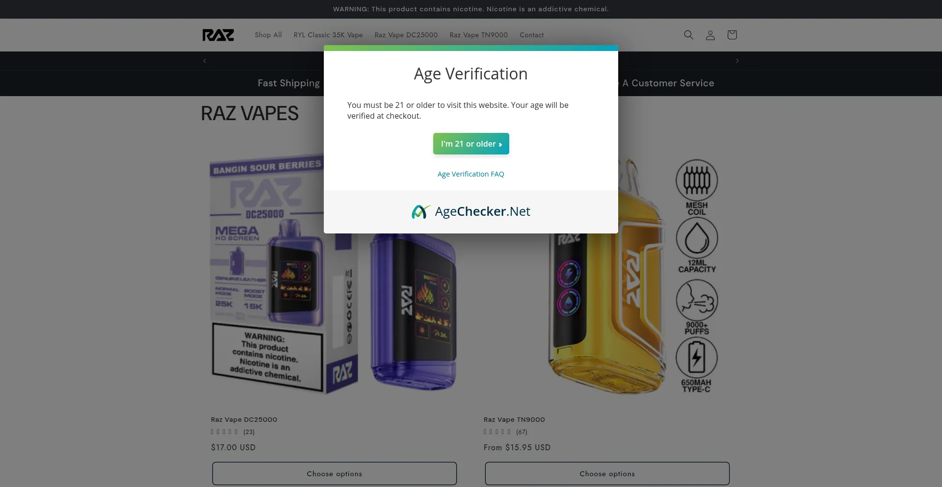 cdn.shopify.com raazvape.com www.google-analytics.com www.ejuicedb.com fonts.googleapis.com agechecker.net stats.g.doubleclick.net fonts.shopifycdn.com cdn1.judge.me cdn.agechecker.net +12 de plus