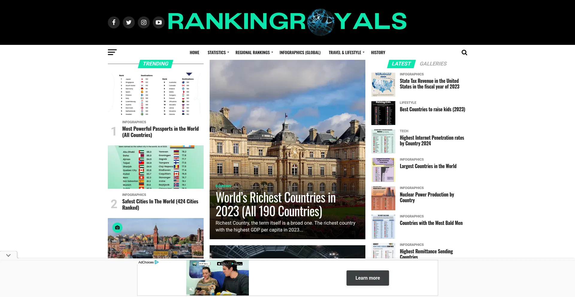 Welcome to RankingRoyals. No.1 Global News, Rankings, Statistics and LifeStyle Network Trusted by Millions. Get latest updates from RankingRoyals InfoGraphics.