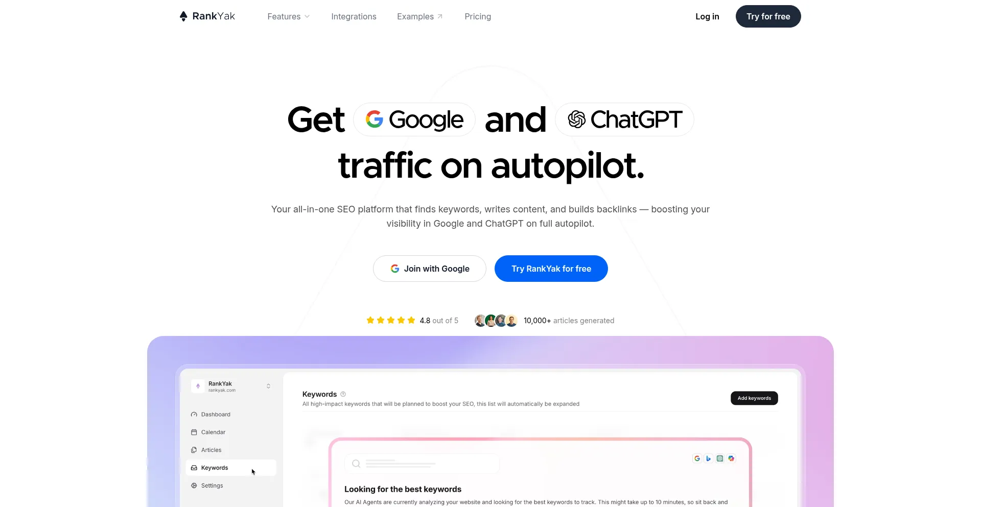 RankYak's AI Agents automate SEO — finding keywords, planning content, and publishing optimized articles to boost traffic and rankings effortlessly.
